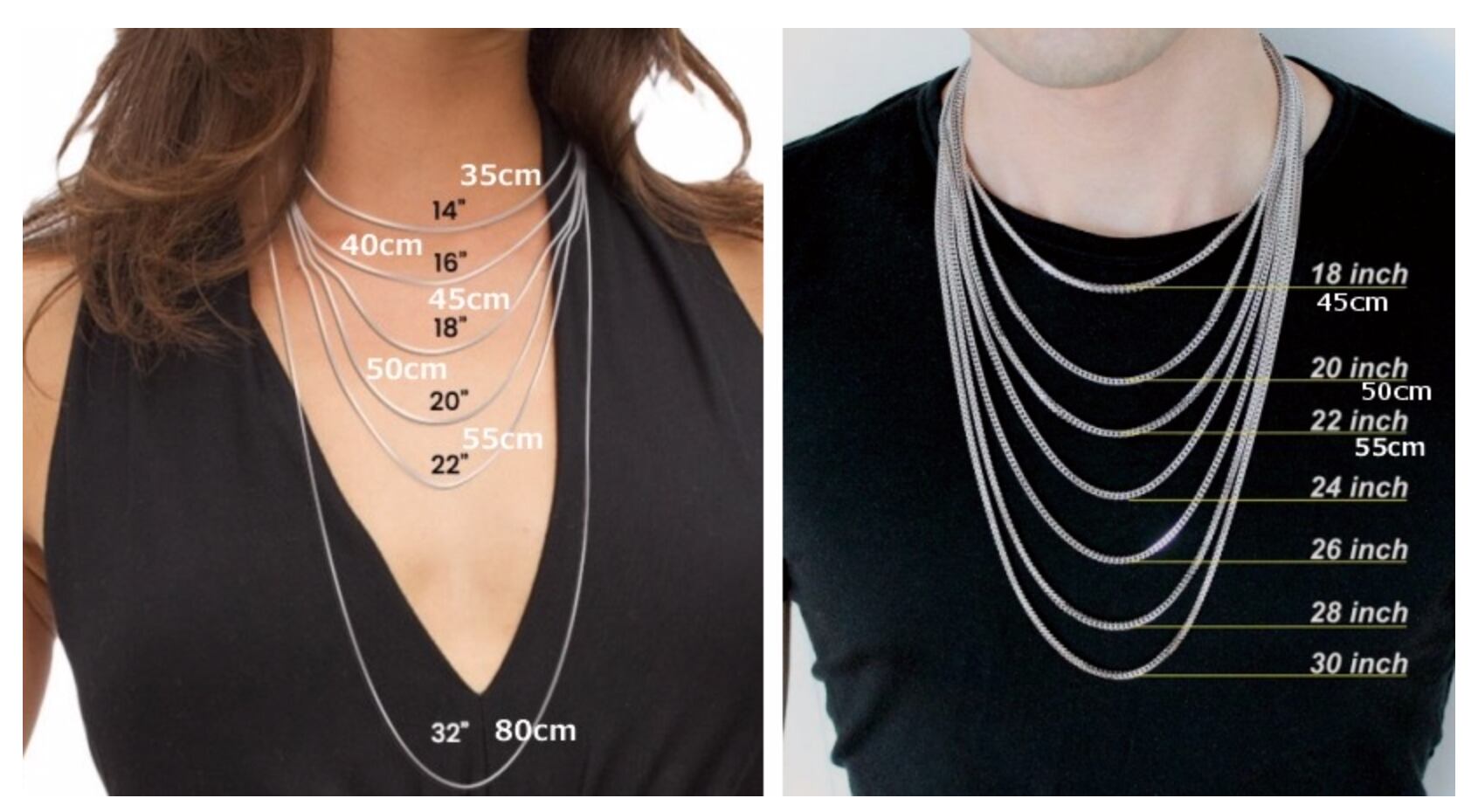 お好みにはなりますが、普通体型の女性だと18インチ、45cmのチェーンを選んでいただくことが多いようです。細身の女性ですと、16inch、40cmでもよろしい良いです。